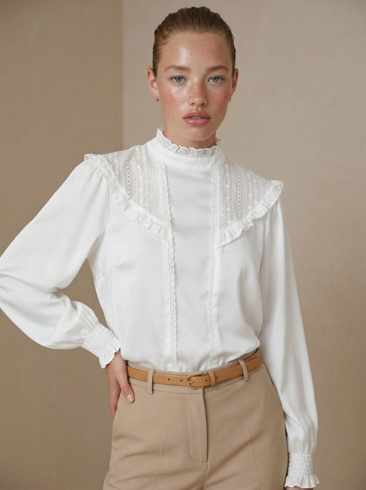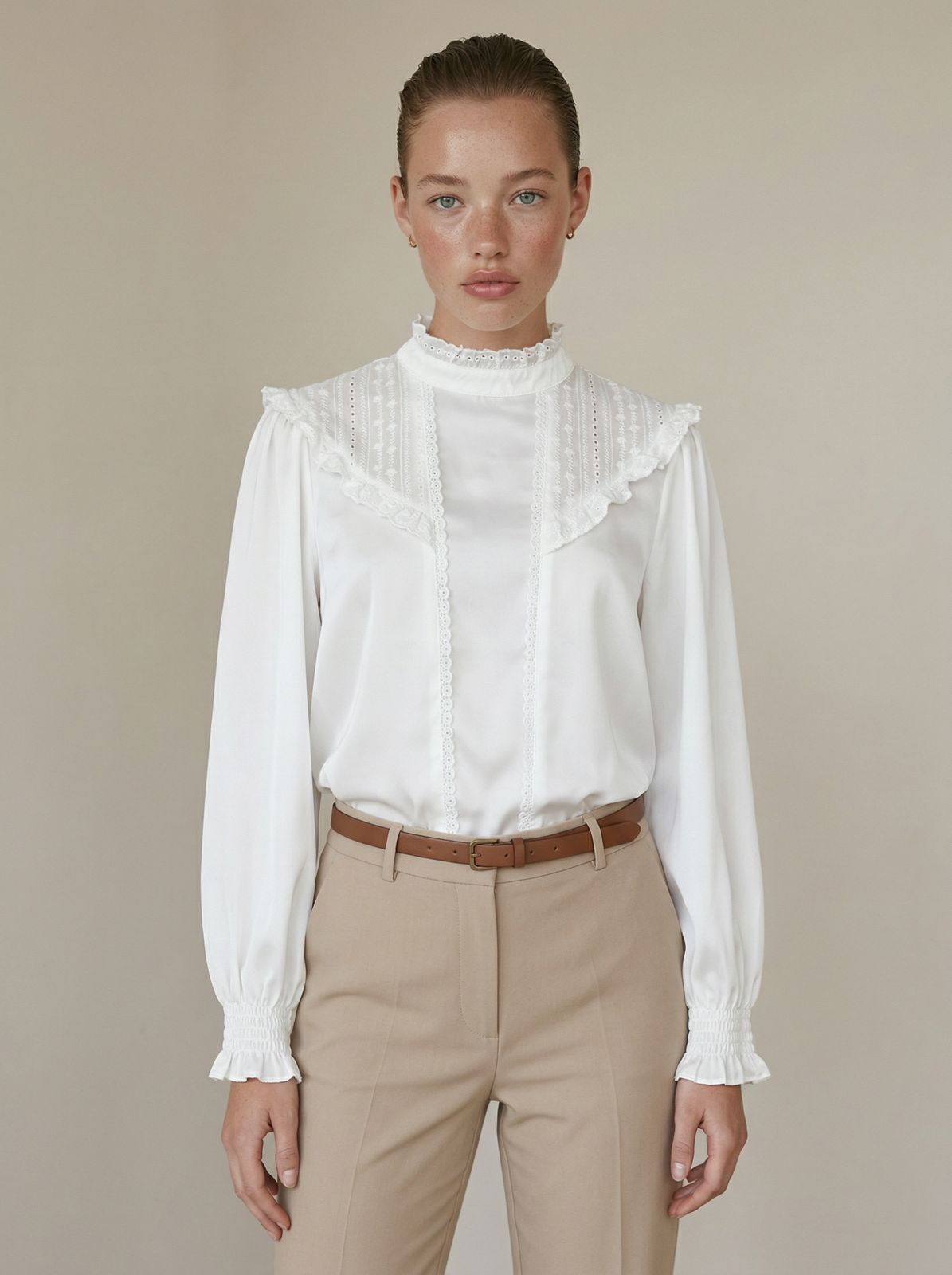 – Camisa de Voile de algodon con puntillas