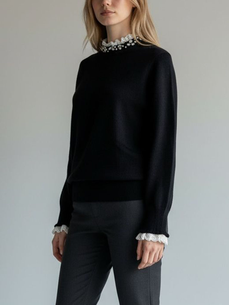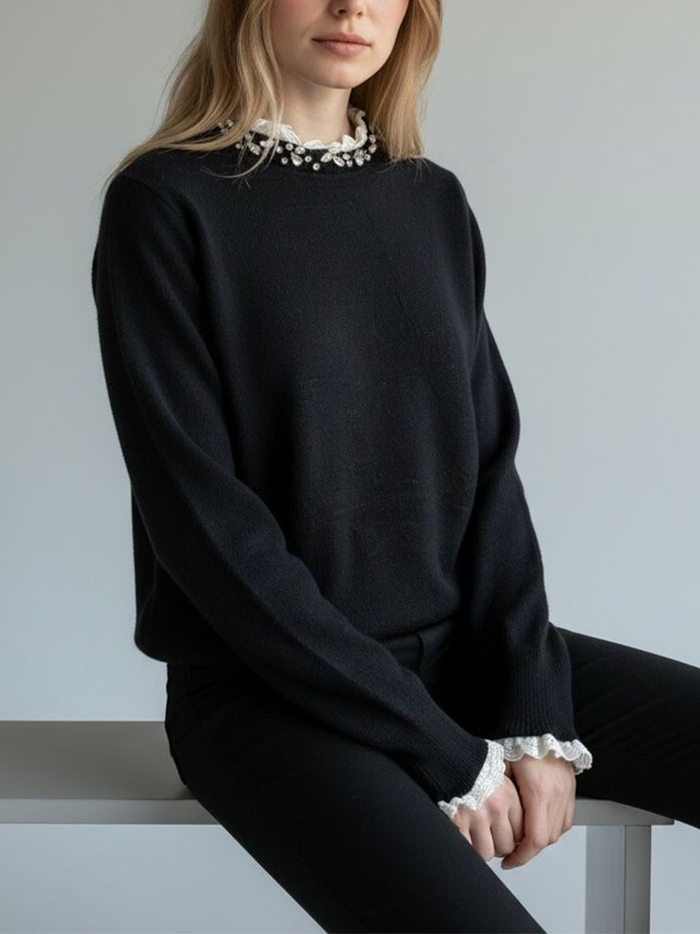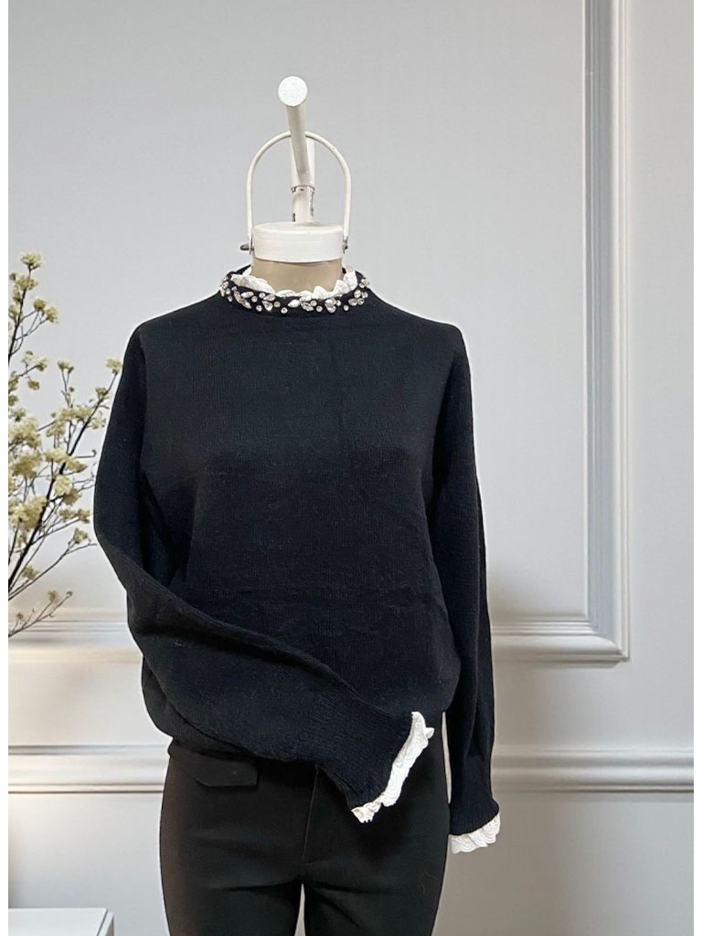 – Sweater con detalle de volados en el cuello con apliques de brillo