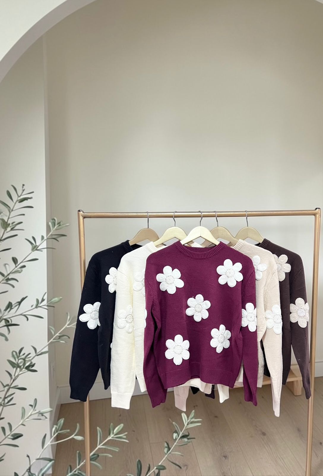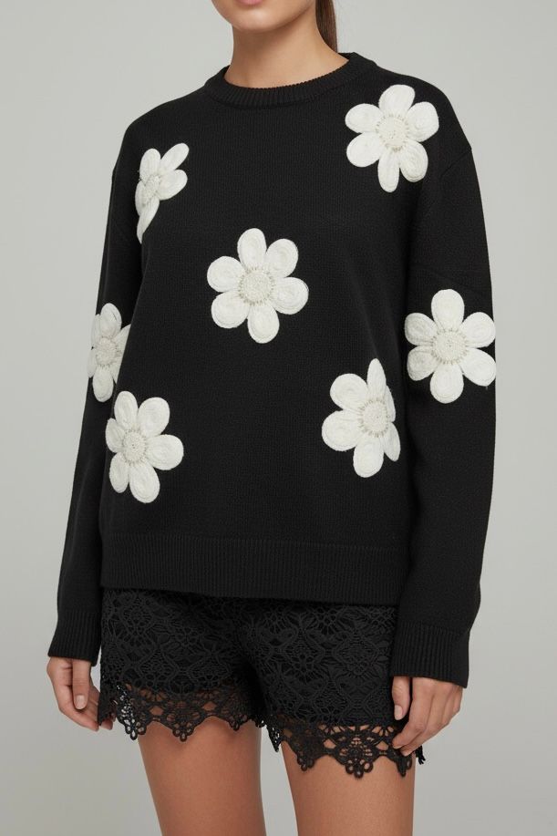 – Sweater con flores bordado y apliques de perlas y canutillos